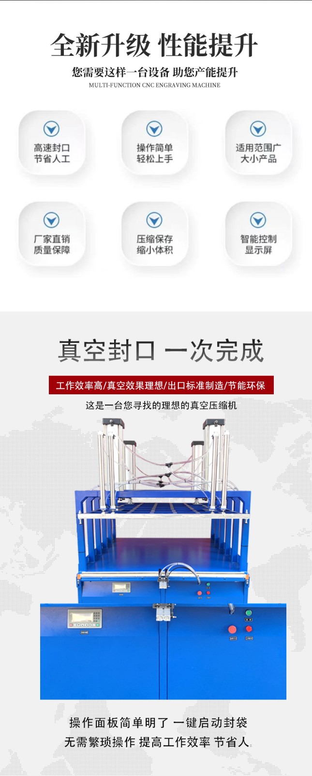 降低運輸成本。體積減小意味著單次運輸可裝載更多貨物,間接減少物流費用和運輸過程中的擠壓損壞。封口尺寸:根據常用包裝袋的大小選擇合適的封口長度和寬度,確保能滿足包裝需求。