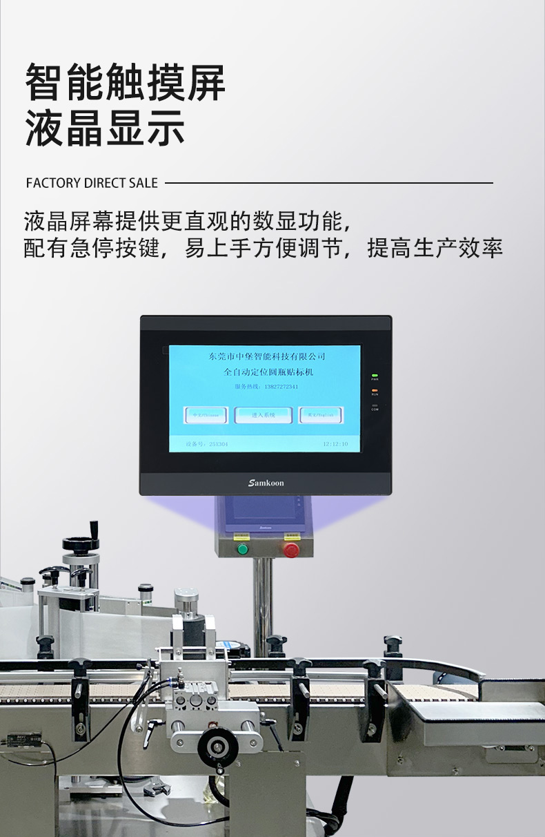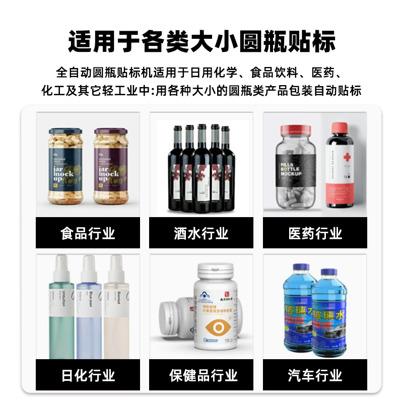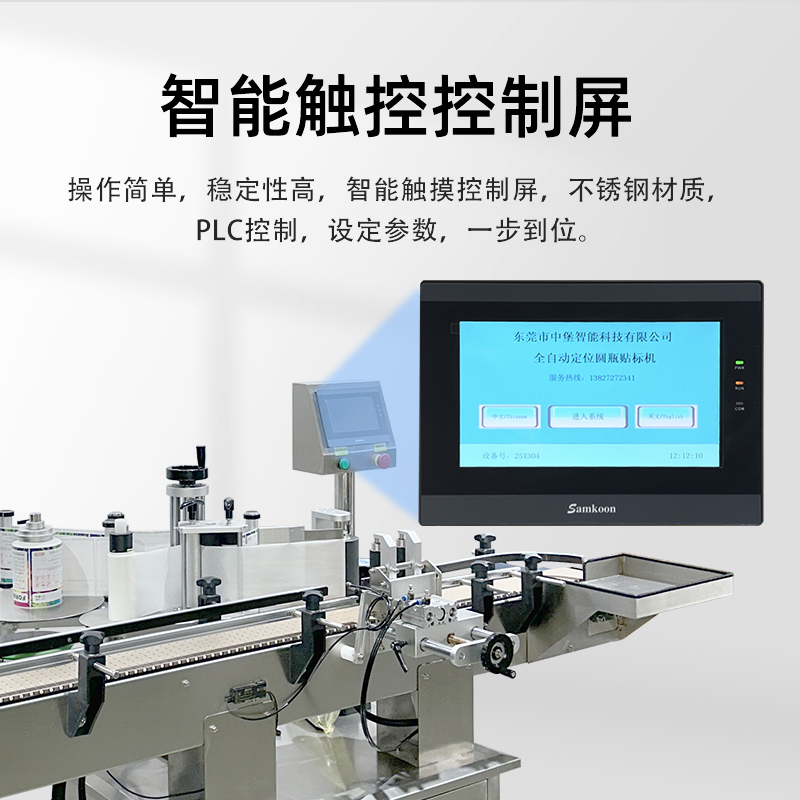 - 適配范圍廣,換產成本低無需大量更換機械部件,即可兼容直徑 30-100mm(部分可定制)的圓瓶,支持玻璃、塑料、金屬等不同材質瓶身;同時能處理不干膠、監管碼、防偽標等多種標簽,換產時僅需在觸摸屏調整參數,10 分鐘內即可完成切換。