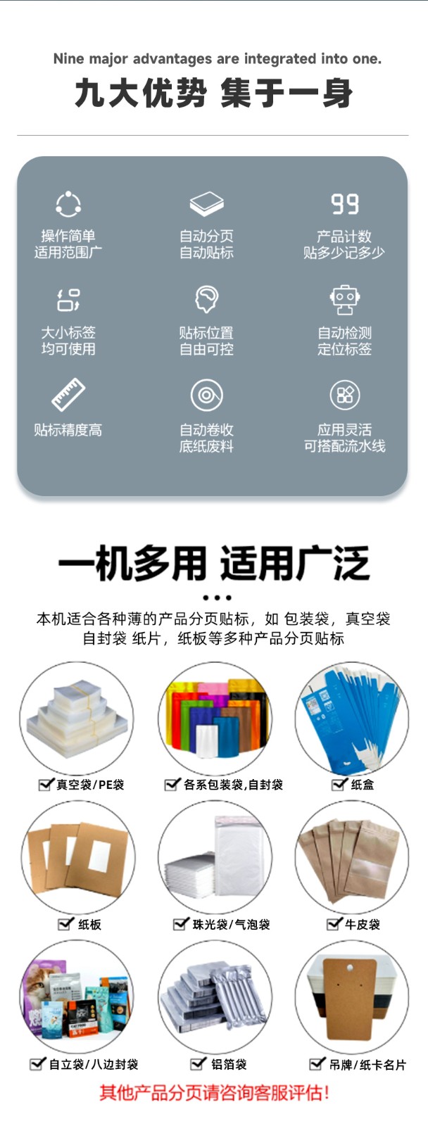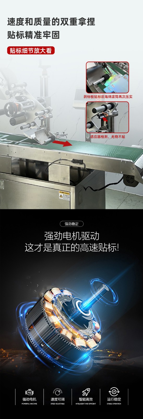 智能控制:具備自動光電追蹤功能,可實現無物不貼標、無標自動校正和標簽自動檢測,防止漏貼和標簽浪費。