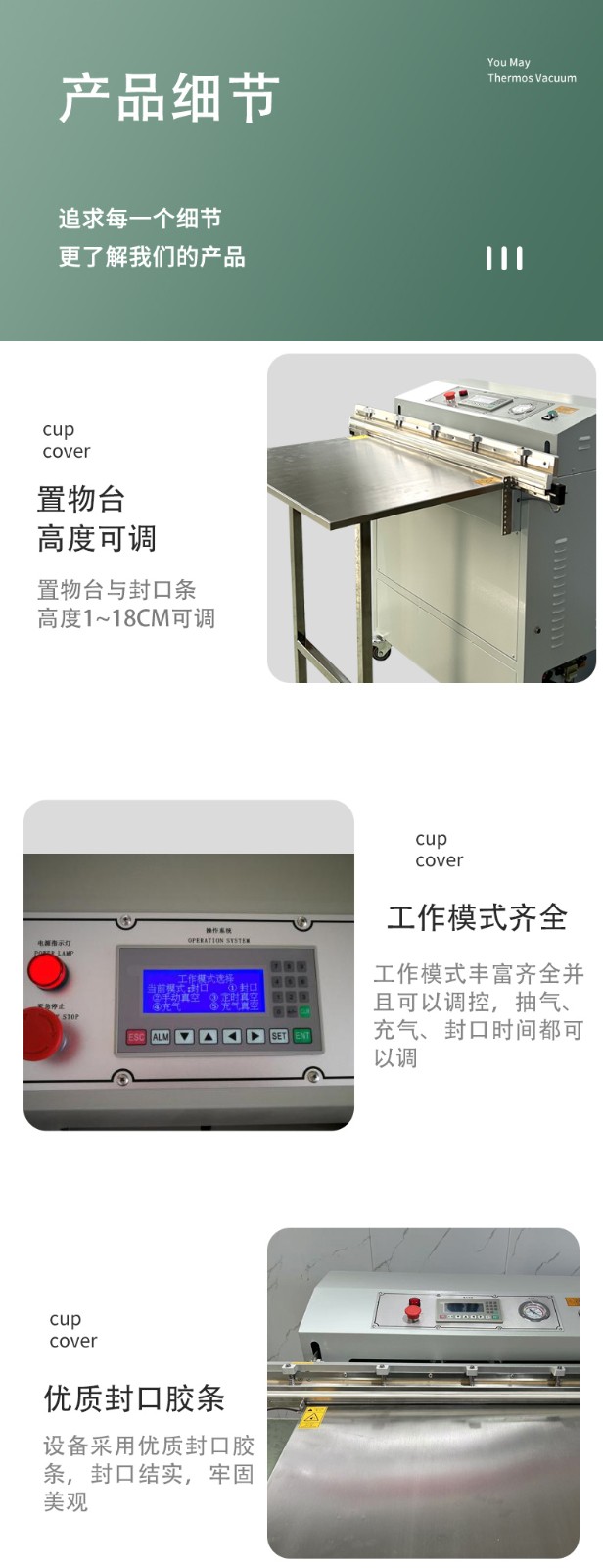 - 結構相對簡單,核心部件(真空泵、封口條)易檢修,日常清潔保養方便。