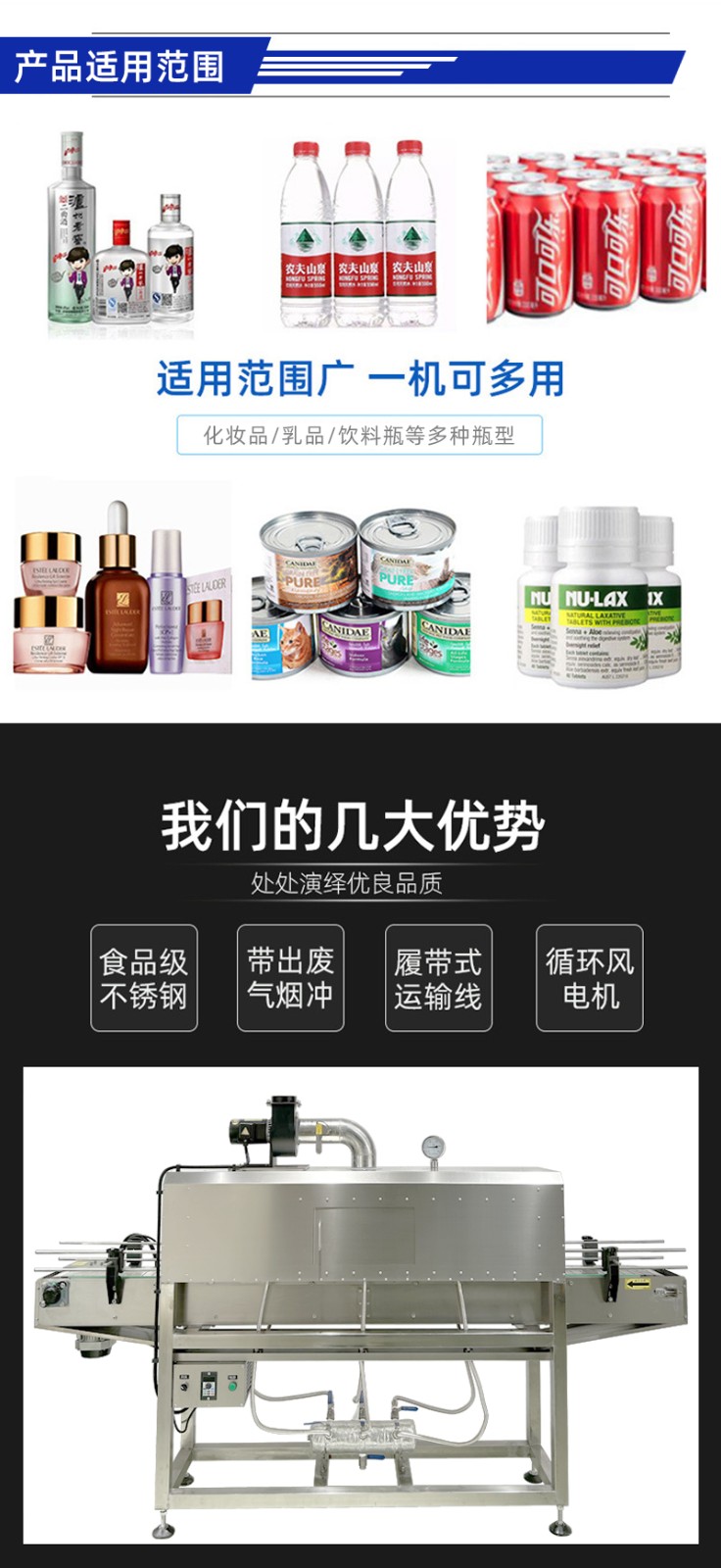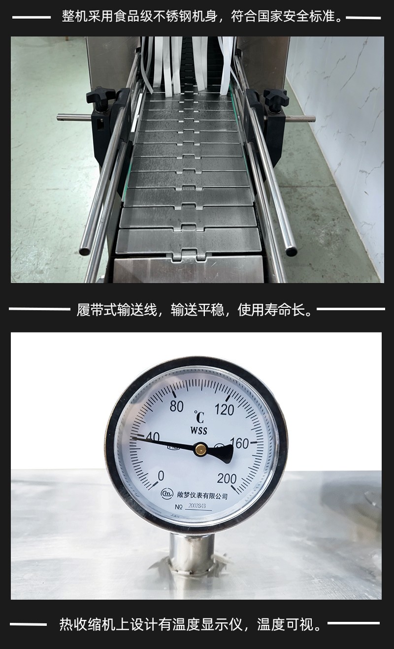 在收縮效果上,熱風收縮受限于熱風流動的不均勻性,容易出現(xiàn)局部溫度過高或過低的情況,導致膜材收縮后表面產生褶皺、氣泡,或邊角處收縮不緊實,影響包裝美觀度;而蒸汽具有良好的滲透性和擴散性,能夠均勻包裹產品和膜材的每一個部位,使膜材受熱同步且均勻,收縮后能緊密貼合產品表面,無論是規(guī)則的瓶裝,還是不規(guī)則的異形件,都能實現(xiàn)平整光滑的包裝效果,大幅降低次品率。