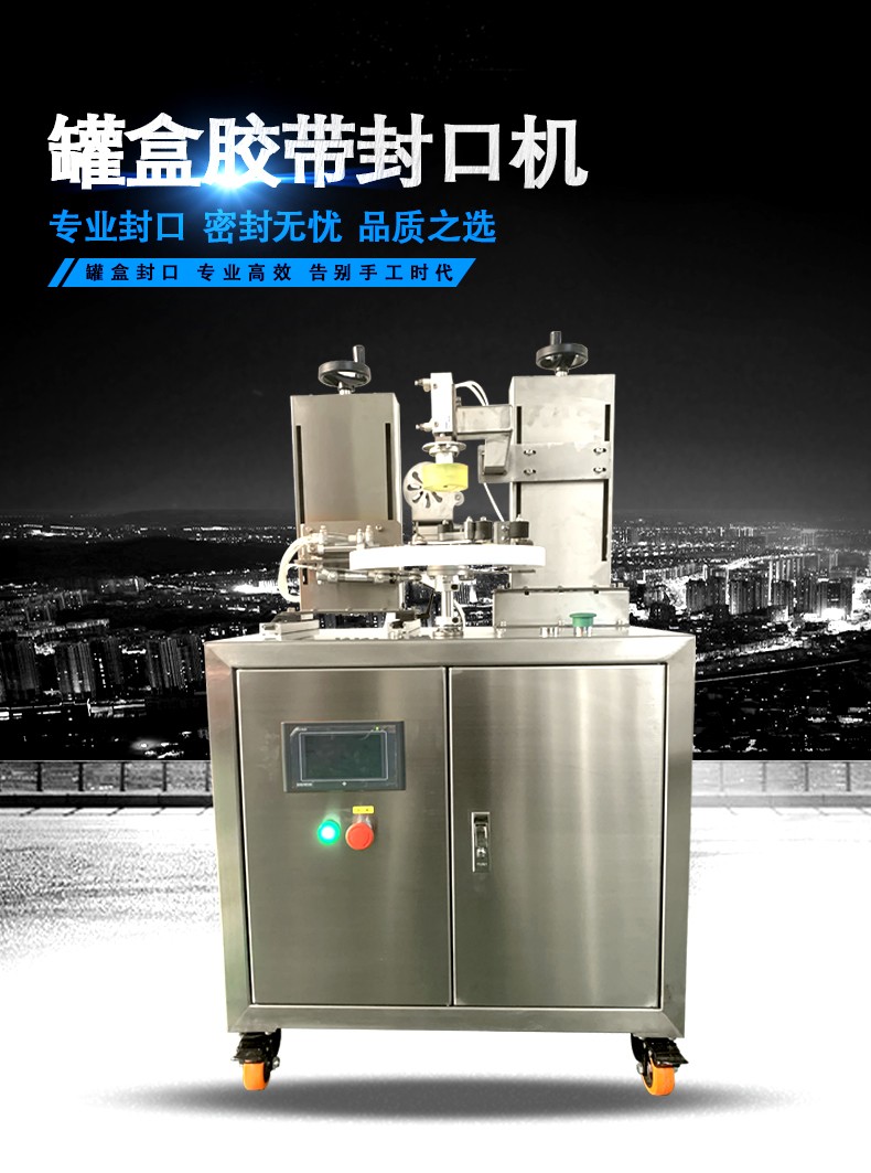 - 啟動與膠帶送料按下啟動按鈕后,設(shè)備動力系統(tǒng)驅(qū)動膠帶供給軸運轉(zhuǎn),膠帶經(jīng)導(dǎo)向輪輸送至罐盒開口邊緣,同時張力控制器啟動,精準調(diào)節(jié)膠帶張力,防止膠帶松弛或拉伸斷裂。