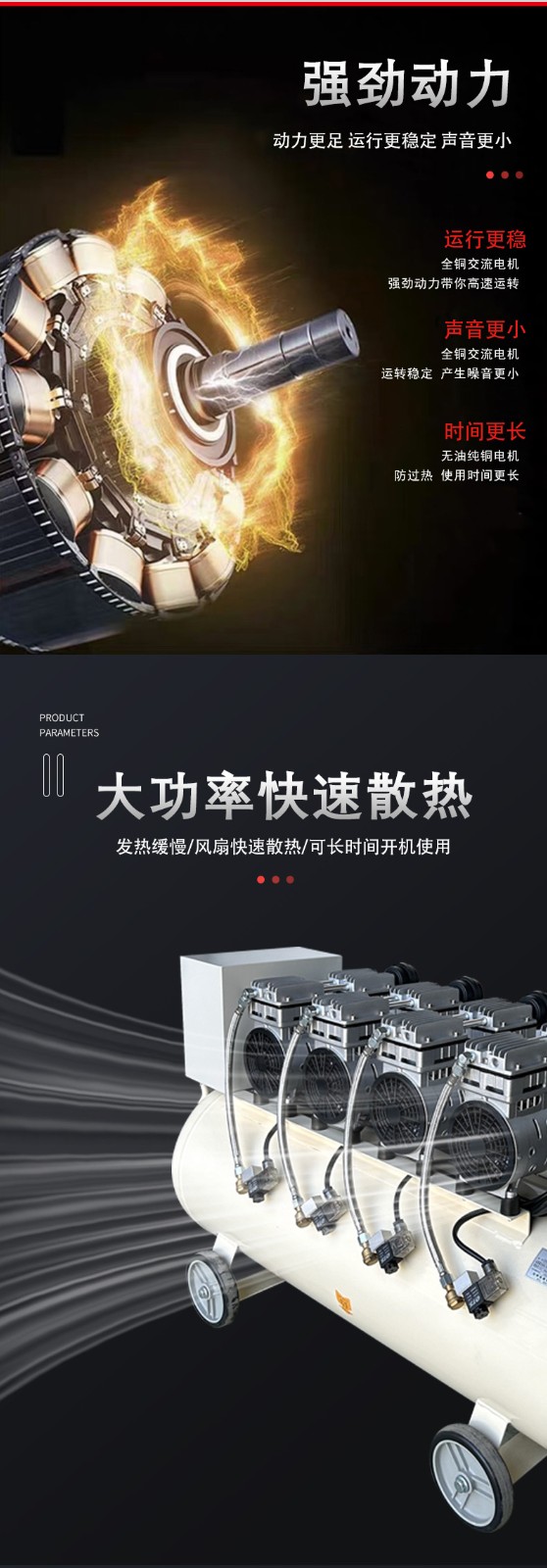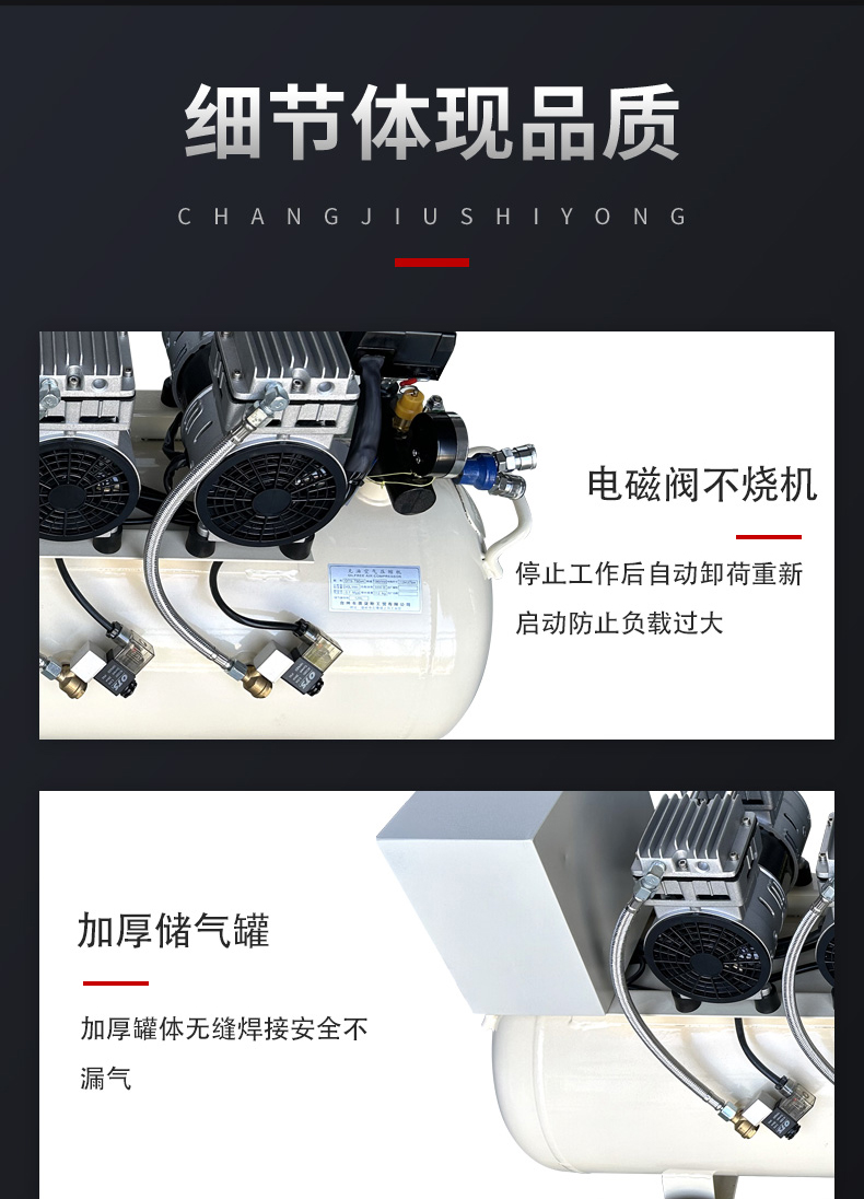 • 壓縮過程:活塞向上運動,氣缸容積減小,空氣被壓縮,壓力升高。由于采用特殊的活塞環和氣缸材料,如聚四氟乙烯等自潤滑材料,活塞與氣缸之間形成良好的密封和潤滑,無需潤滑油,就能保證壓縮過程的順利進行。